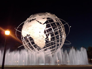 After snapping a shot of the Unisphere, I wandered over to a few of the only other remaining buildings from the fair, then sat on a bench for awhile, simultaneously resting and reminiscing in my mind. By now it was almost completely dark, so I pointed my weary feet up towards Roosevelt, this time determined to catch the train back to 61st Street in Woodside.